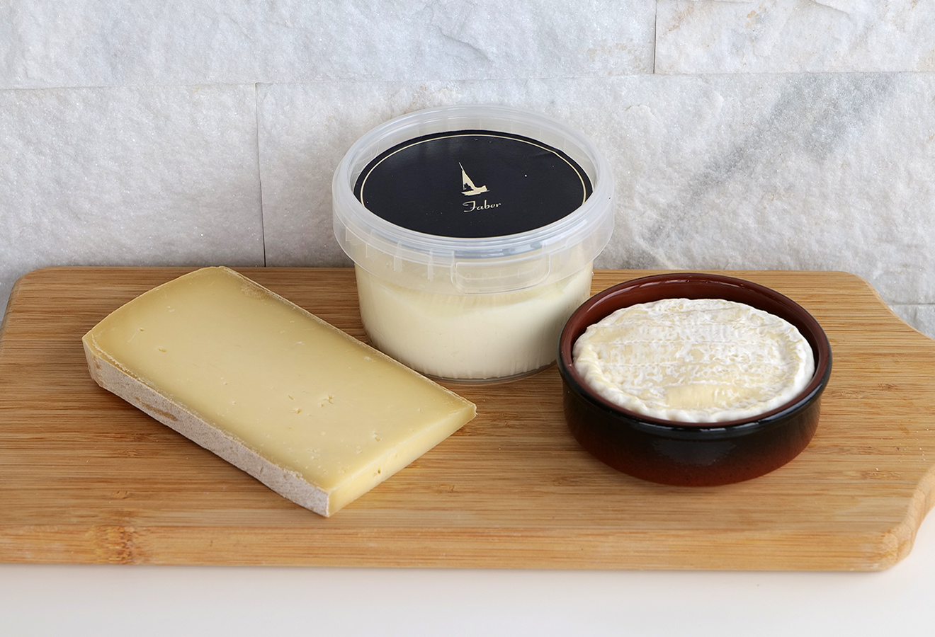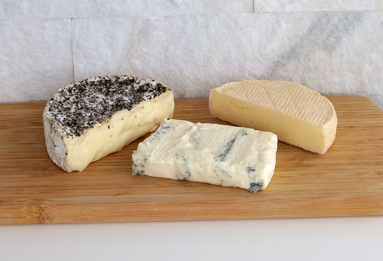 2種類のチーズがミルフィーユのように重なった珍しいチーズ。とてもクリーミーでブルーの塩味とマスカルポーネの甘みが引き立ちます。パンやクラッカーに乗せてどうぞ。