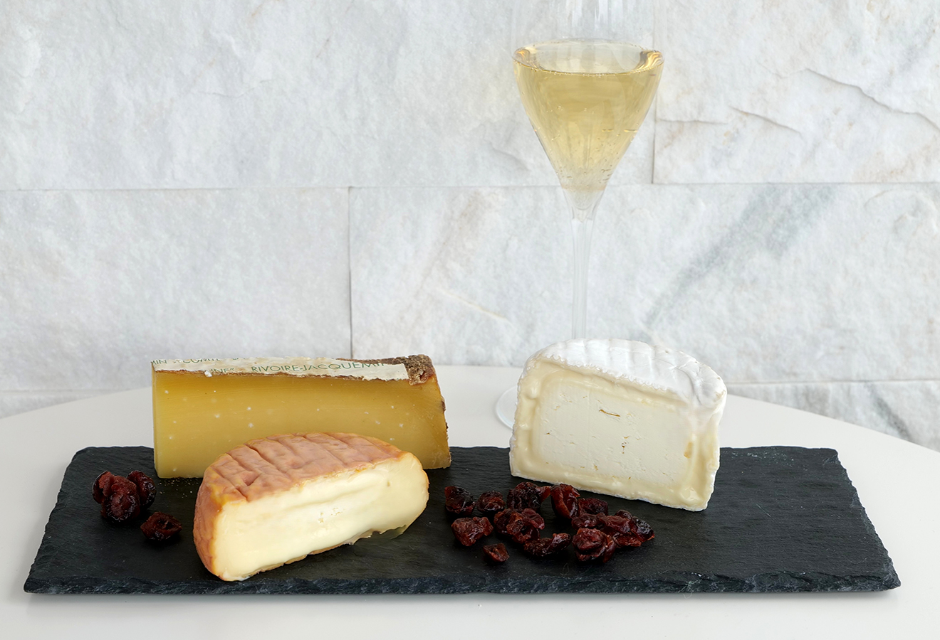 とろりとしたくちどけ。フルーティな余韻。シャンパーニュ(特にブランドノワール)やシャルドネのワインとお楽しみください。